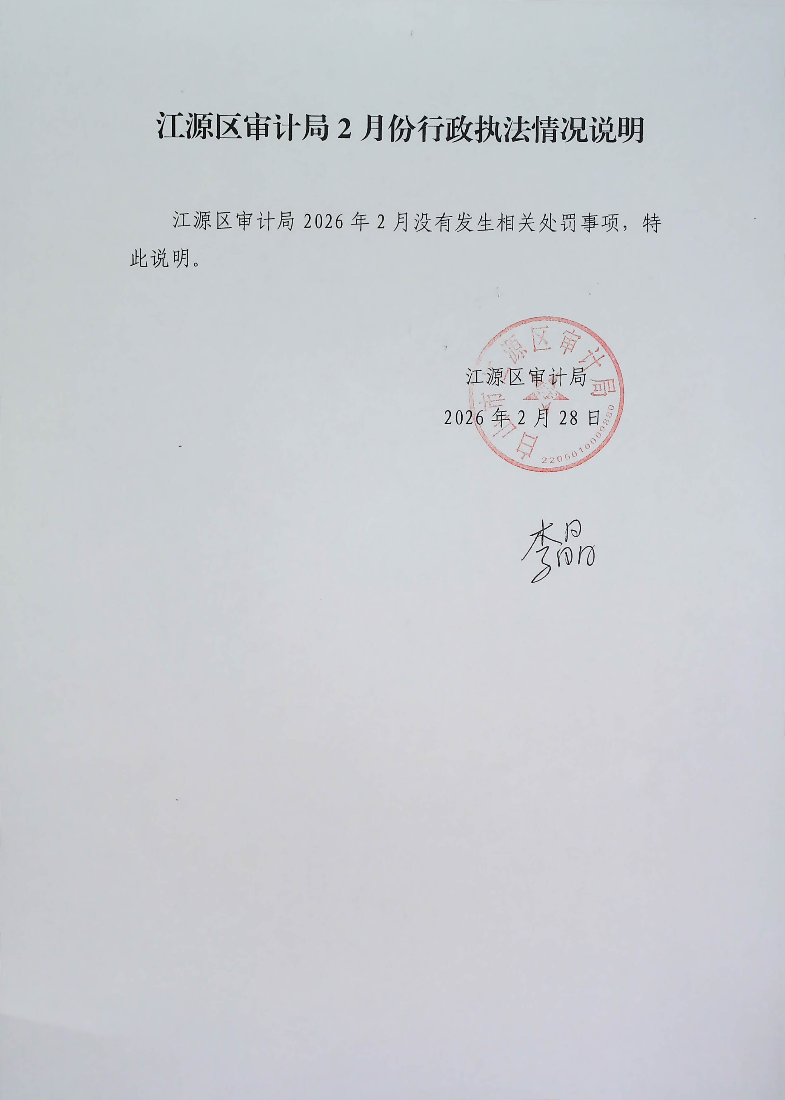 江源区审计局2月执法情况公示