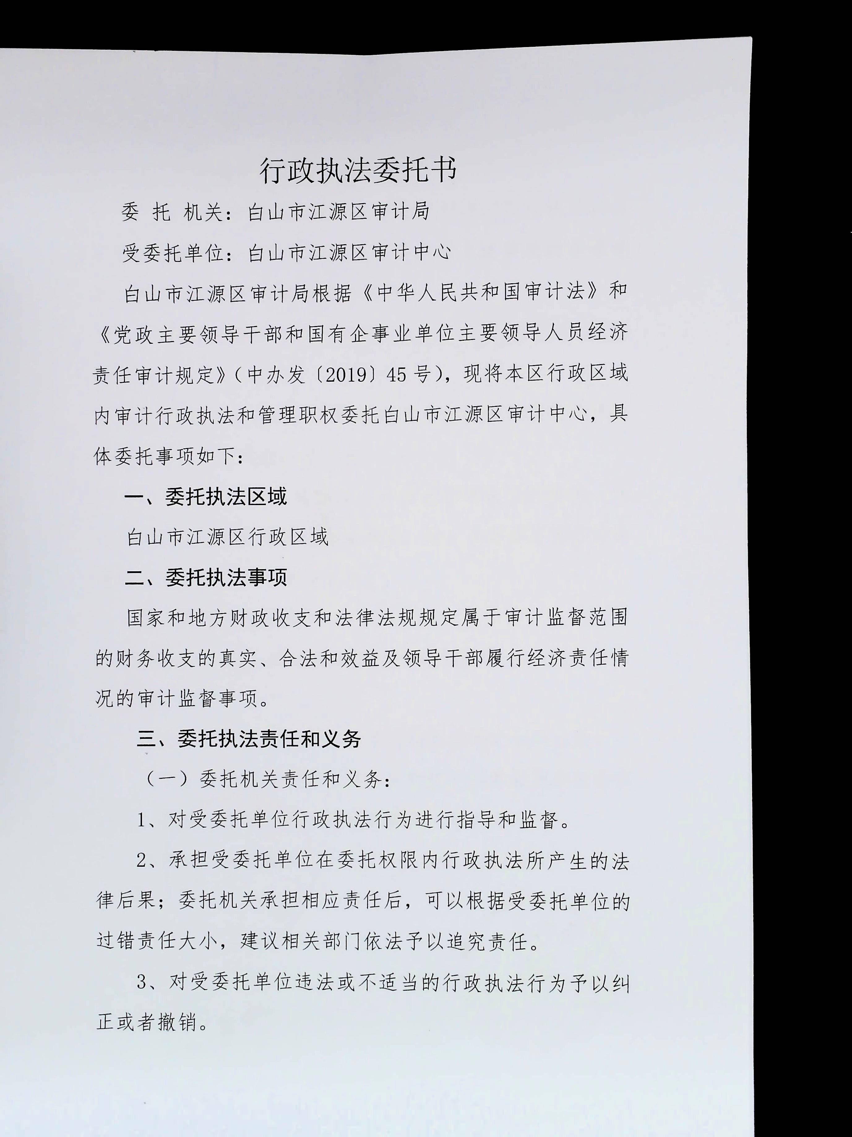 江源区审计局行政执法委托书
