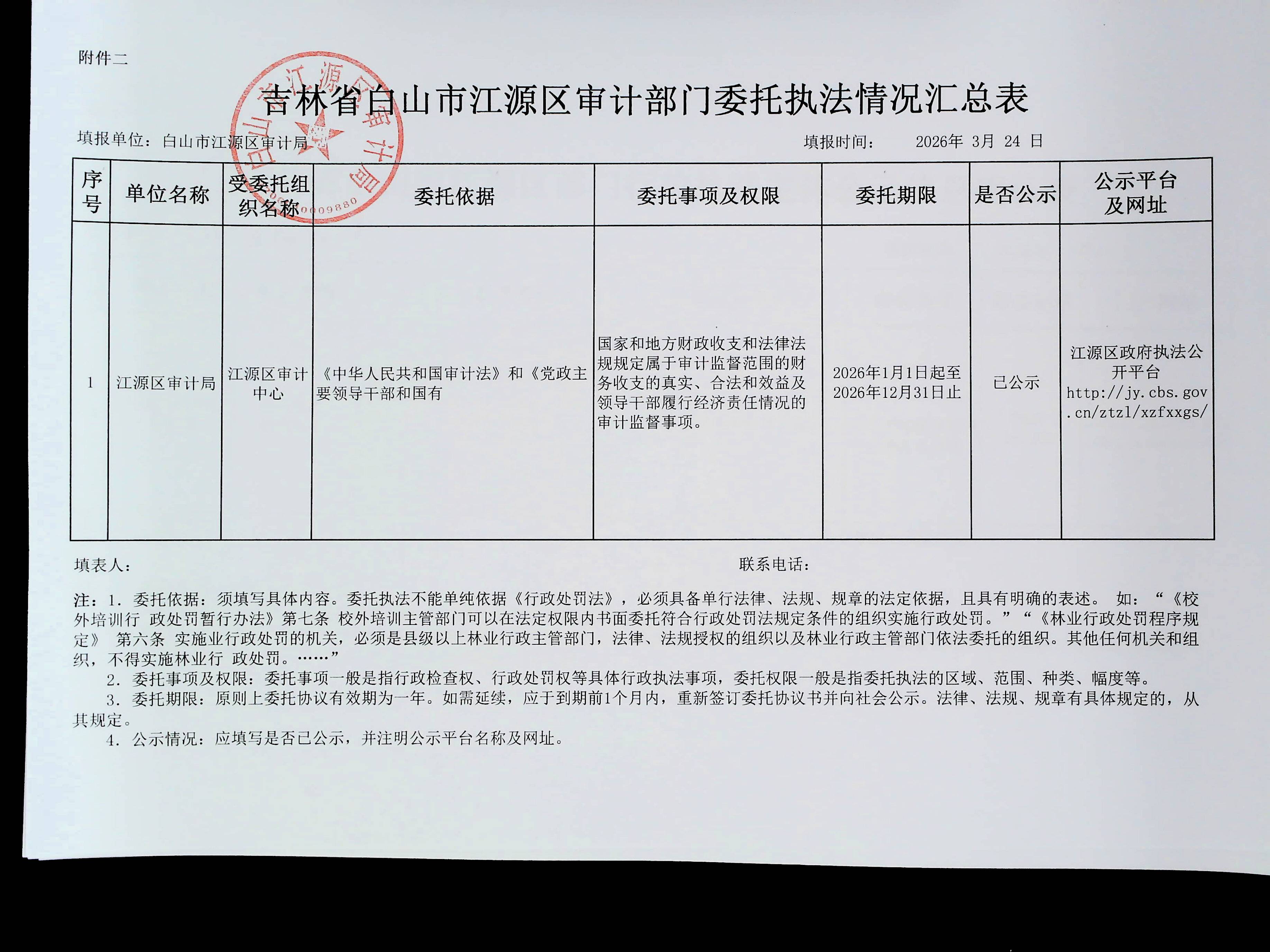 江源区审计局委托执法情况汇总表