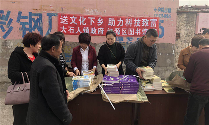 为了迎接4月23日世界读书日,大石人镇在4月2日这天特邀江源区图书馆到大石人镇“送文化下乡 助力科技致富”。